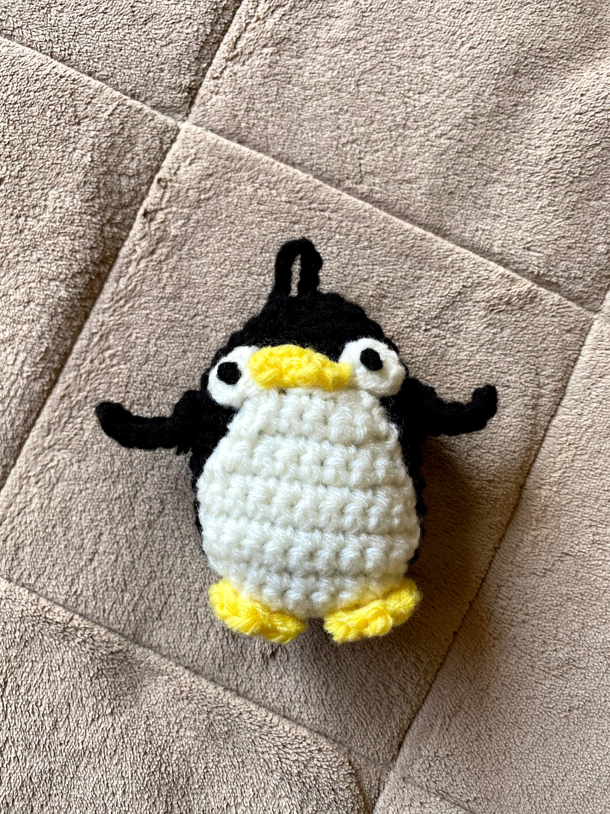 Penguin eco scrubber. Crochet. I referred to Dharma Yokota's recipe. Production time is 2 hours. (C) KOSHIRYOKU Lab. (ペンギンのエコ・たわし。かぎ針編み。ダルマ横田毛糸さんのレシピを参考にしました。製作所要時間 2 時間。(C) 好試力研究所)